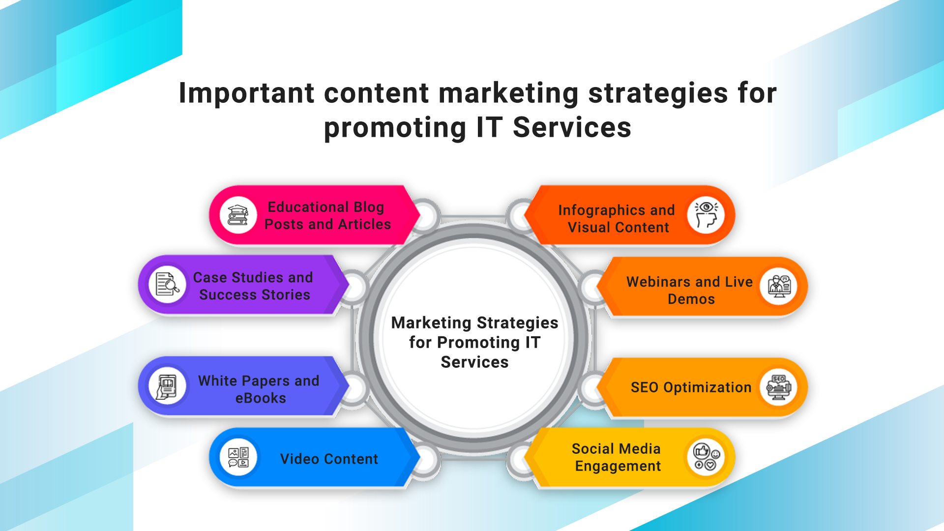 By implementing these content marketing strategies, you can effectively promote IT services, build brand authority, and attract qualified leads in the competitive IT industry. Adjust your approach based on audience feedback and analytics to continuously improve your content marketing efforts.